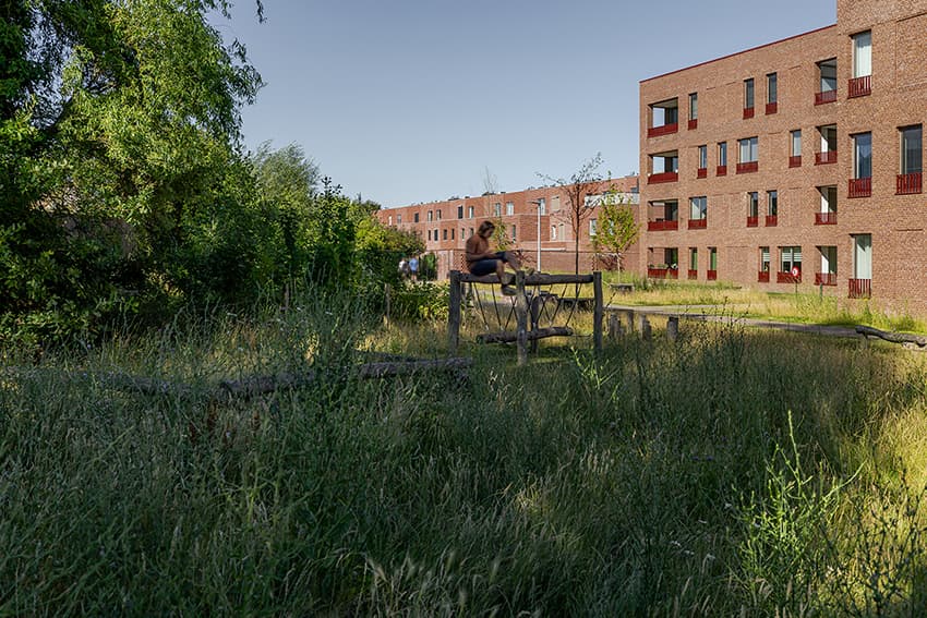 Saffrou is geen dichtbebouwde woonwijk. Integendeel, het geheel telt als het ware bijna meer groen en open ruimte dan muren. Zo zorgen de groene parkzones tussen de gebouwen voor rust en is er veel ruimte voor spel, beweging en ontspanning. Met als grote blikvangers: het urban forest, de binnentuin en de centrale loods.